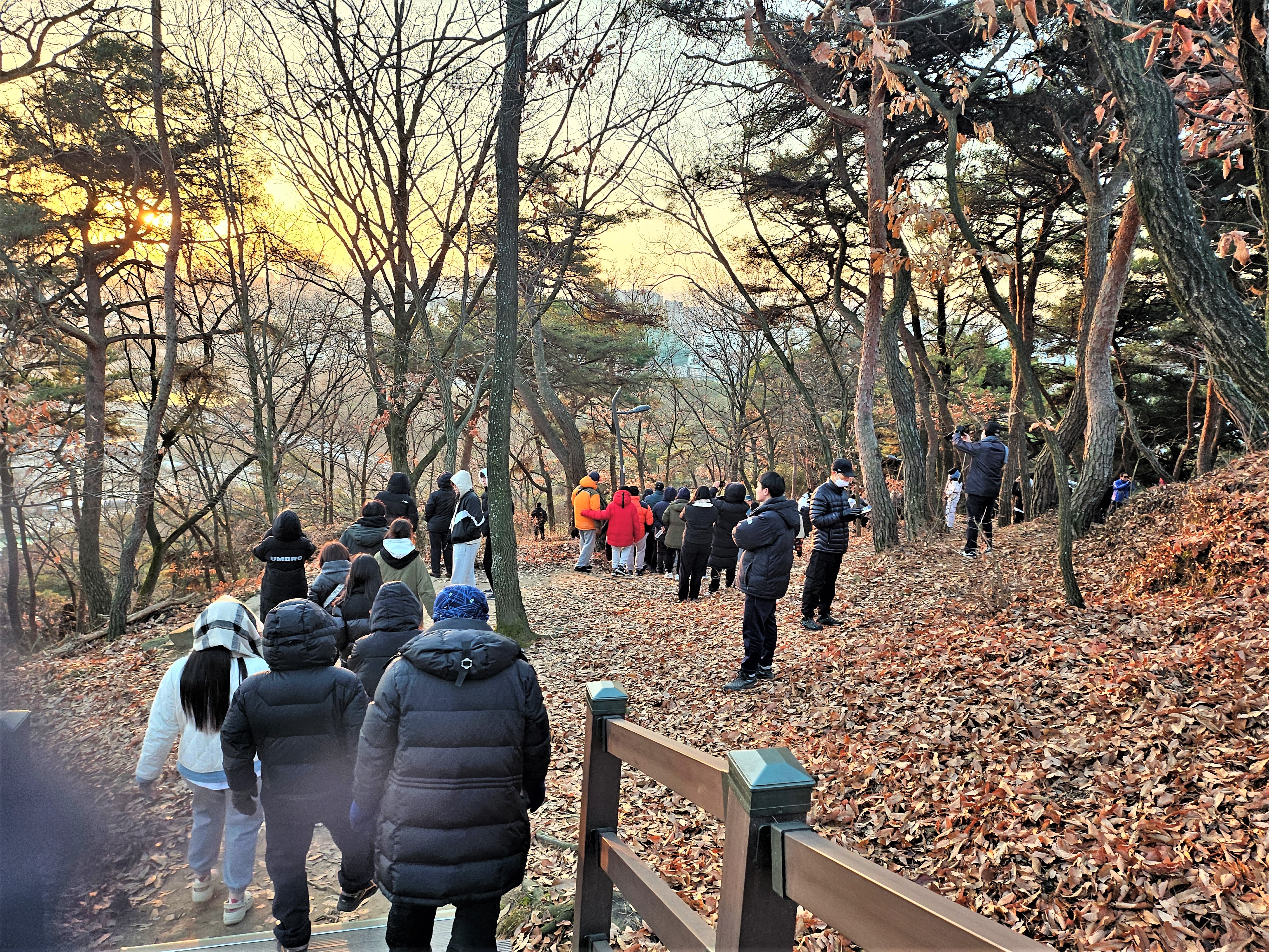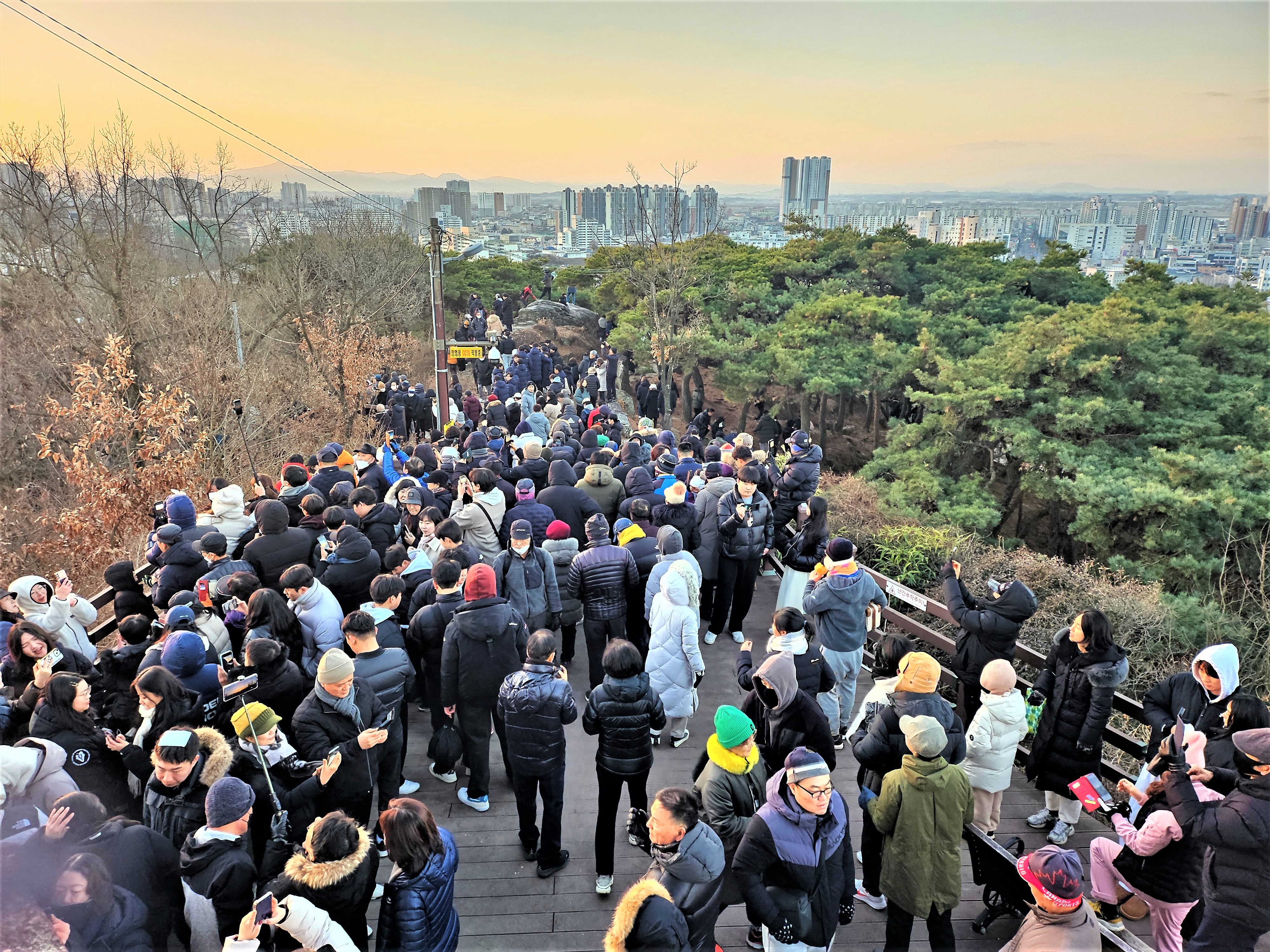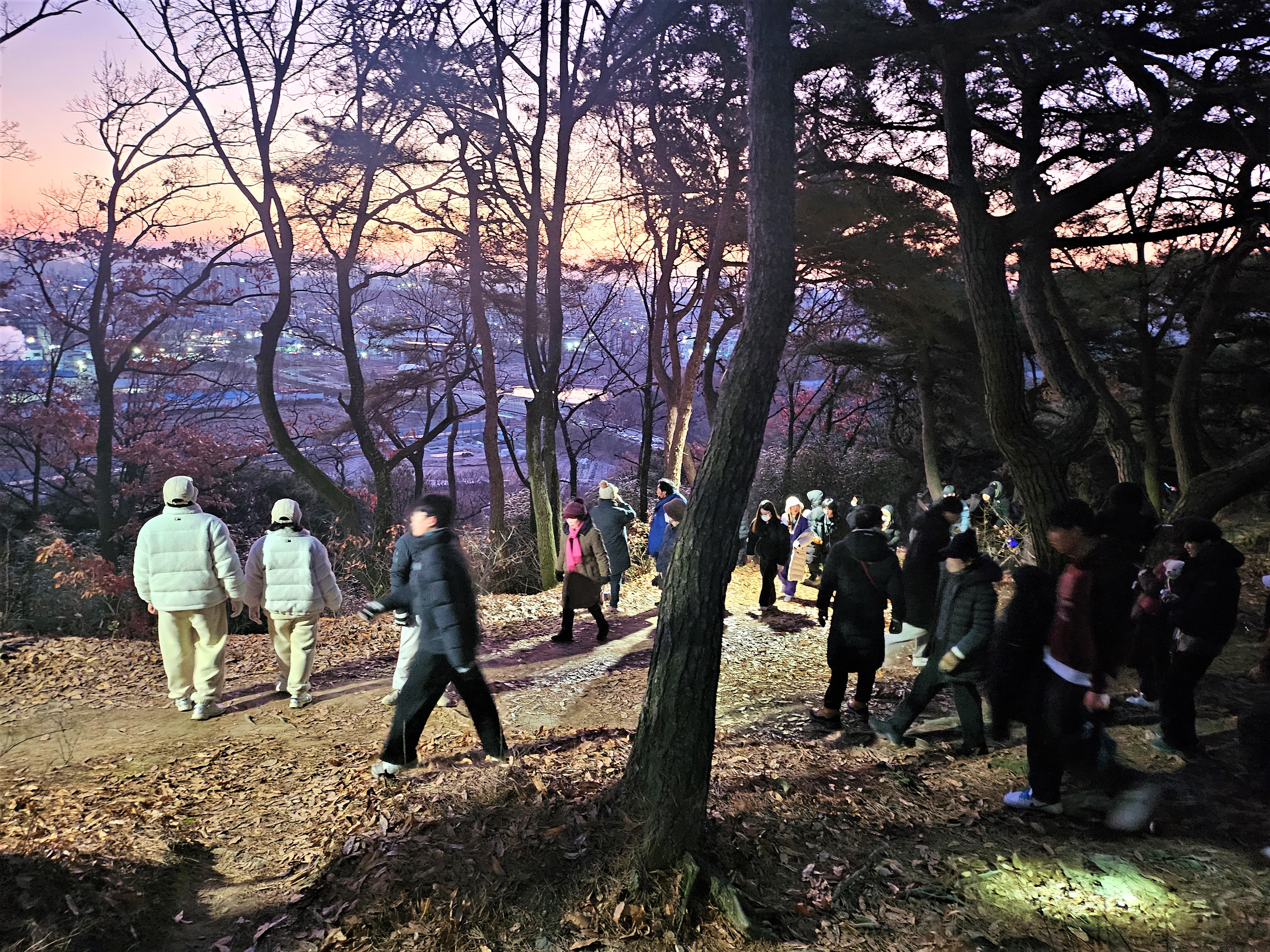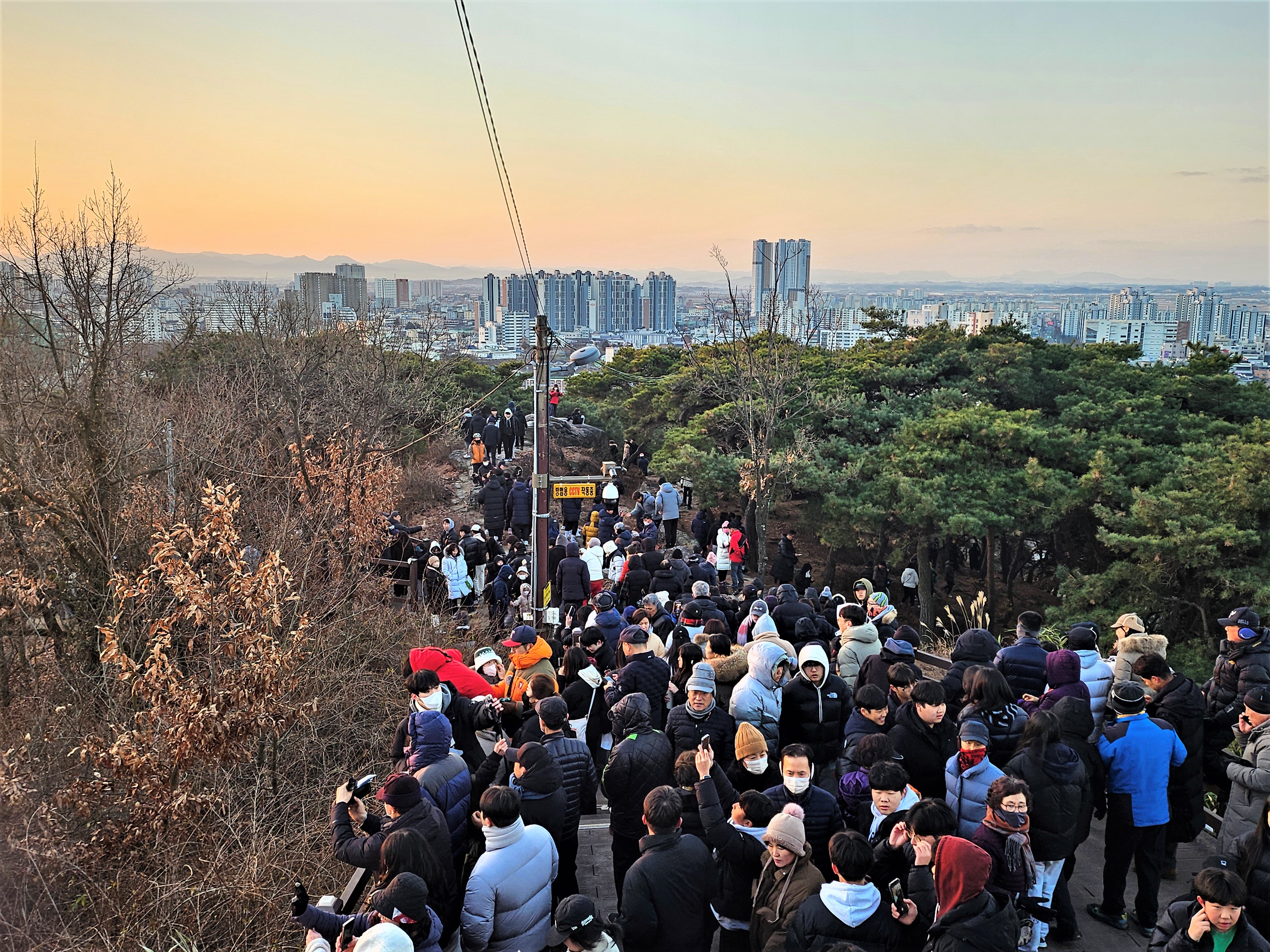 일출을 마치고 삼삼오오 가족과 함께 집으로 돌아가는 발걸음도 길게 긴 줄을 이루며 가벼웠습니다. 배산 정상으로 오가는 길은 온통 시민들로 꽉 들어차 배산의 새해 첫날 일출의 인기를 실감할 수 있었습니다.