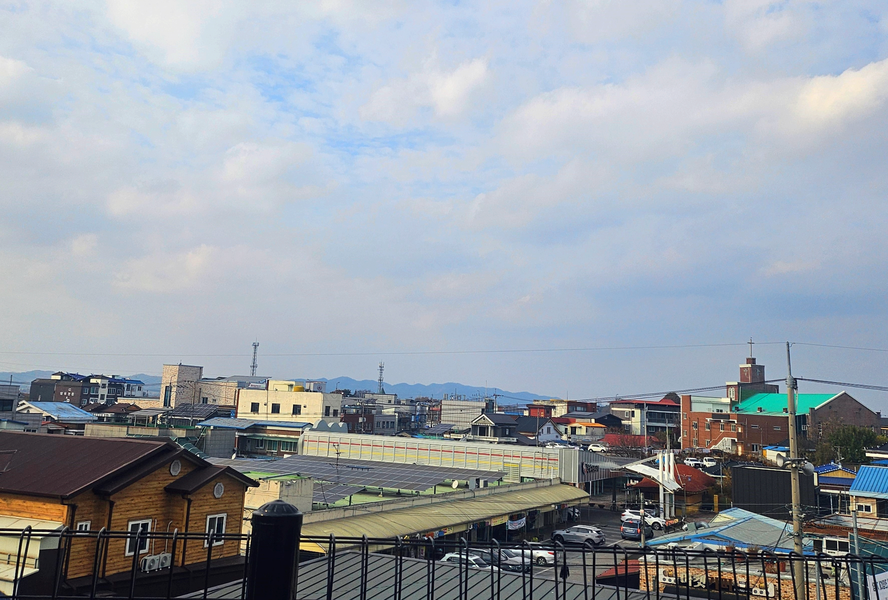 황등 오일장은 바로 코 앞 10m거리에 있고 카페는 황등교회 등 황등 시가지 전망대이다