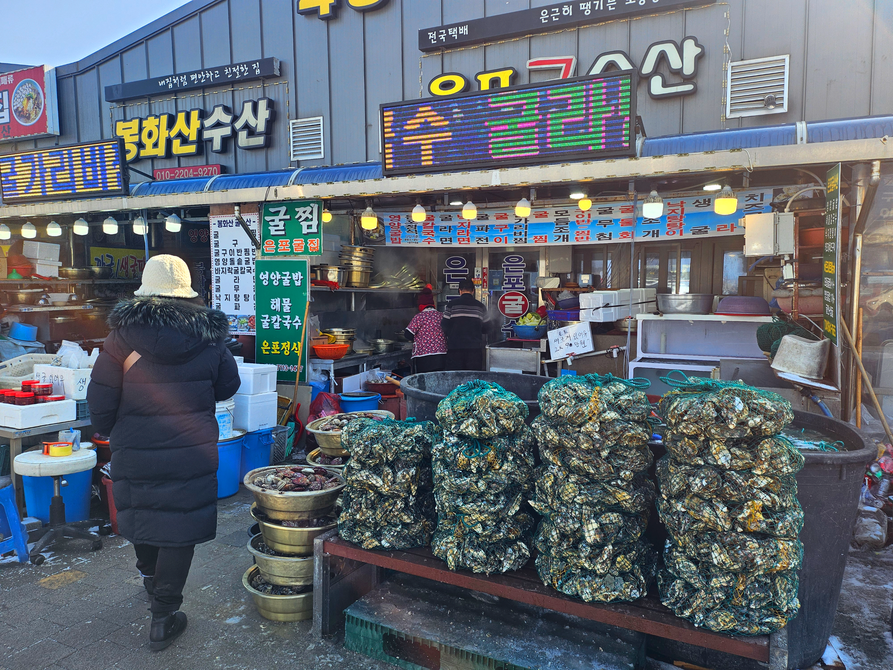 비록 굴 축제 기간을 지났지만 굴단지는 겨울철 내내 미식가들이 발길이 계속 이어진다